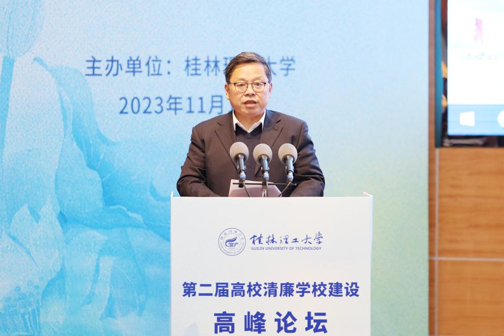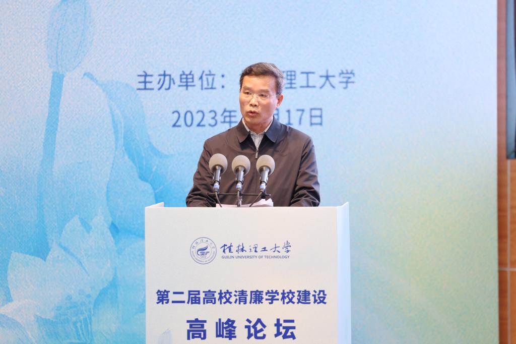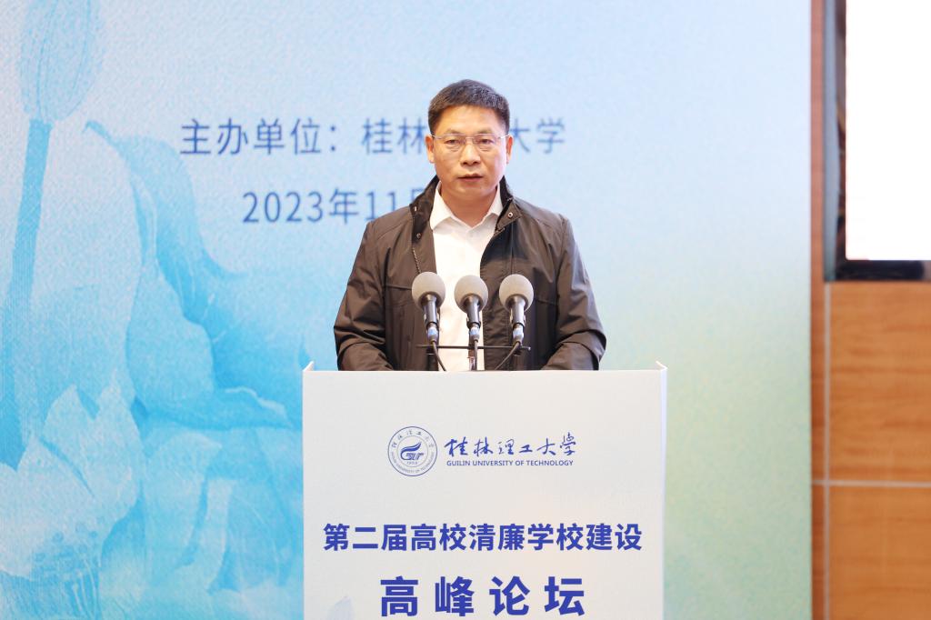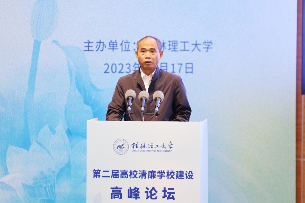 为深入学习贯彻习近平新时代中国特色社会主义思想,全面贯彻落实党的二十大精神,深入学习贯彻习近平总书记关于教育的重要论述,深入学习贯彻习近平总书记视察广西“4·27”重要讲话精神和关于广西工作系列重要指示精神,扎实推进新时代党的建设新的伟大工程,全面深化清廉广西、清廉学校建设,11月17日,由我校主办的第二届高校清廉学校建设高峰论坛在屏风图书馆报告厅顺利举行。本次论坛以“全面深化清廉学校建设,充分发挥纪委职能作用,为高校高质量发展提供‘廉动力’”为主题。
