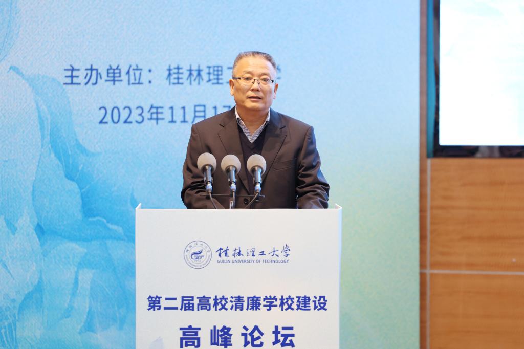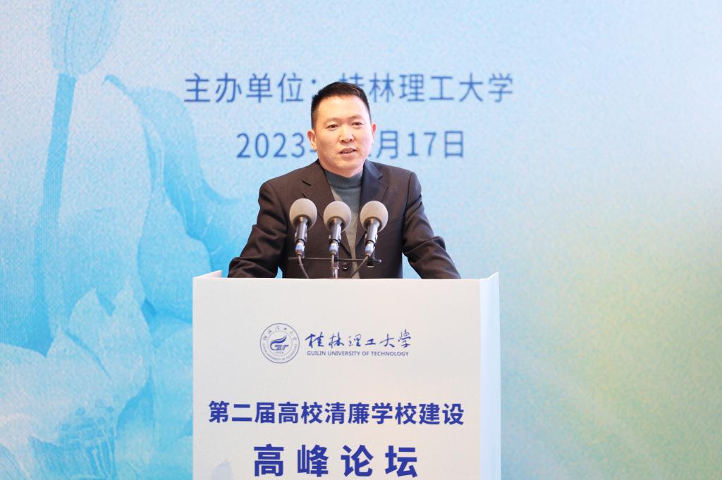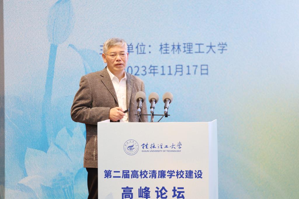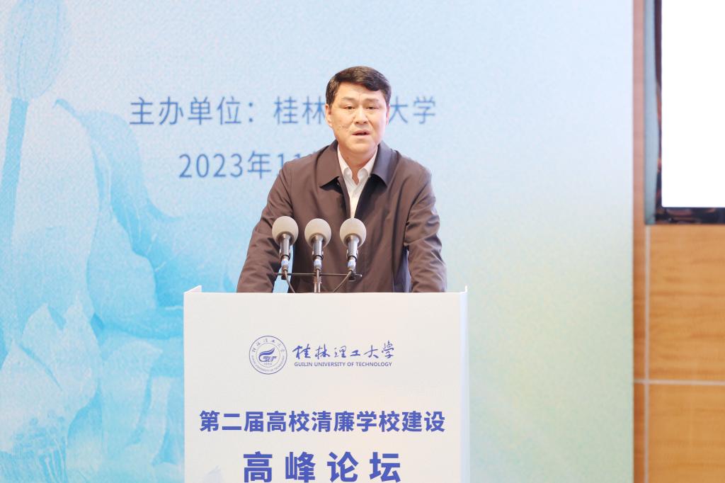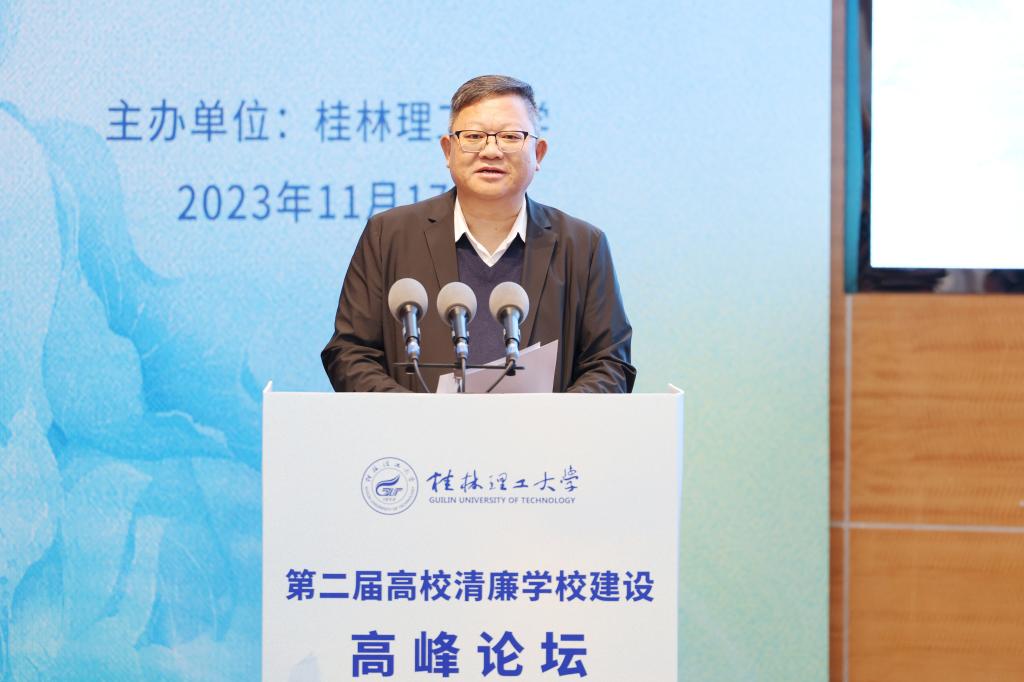 为深入学习贯彻习近平新时代中国特色社会主义思想,全面贯彻落实党的二十大精神,深入学习贯彻习近平总书记关于教育的重要论述,深入学习贯彻习近平总书记视察广西“4·27”重要讲话精神和关于广西工作系列重要指示精神,扎实推进新时代党的建设新的伟大工程,全面深化清廉广西、清廉学校建设,11月17日,由我校主办的第二届高校清廉学校建设高峰论坛在屏风图书馆报告厅顺利举行。本次论坛以“全面深化清廉学校建设,充分发挥纪委职能作用,为高校高质量发展提供‘廉动力’”为主题。