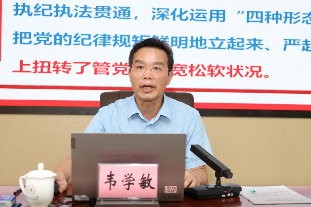 韦学敏指出,要提高政治站位,筑牢信仰根基,深刻领悟“两个确立”的决定性意义,坚定不移担负“两个维护”重大政治责任,坚定政治信仰。要深化学思践悟,凝聚思想共识,深入领会修订《中国共产党纪律处分条例》的重点内容,强化自我约束,提高免疫能力,凝聚干事创业精气神,在新时代新征程上作出新贡献。要履行监督职责,强化责任担当,坚持对违纪问题零容忍,重点查处违反“六大纪律”和违反中央八项规定精神问题,把从严管理监督和鼓励担当作为切实统一起来,不断推动全面从严治党向纵深发展。