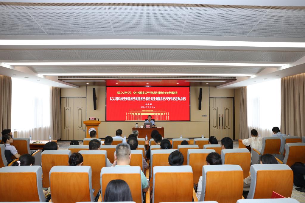 韦学敏以《深入学习<中国共产党纪律处分条例>以学纪知纪明纪促进遵纪守纪执纪》为题,强调要深入学习贯彻习近平总书记关于全面加强党的纪律建设的重要论述,深入学习贯彻新修订的《中国共产党纪律处分条例》,扎实推进党纪学习教育,进一步强化纪律意识、加强自我约束、提高免疫力,增强政治定力、纪律定力、道德定力、抵腐定力,始终做到忠诚干净担当。