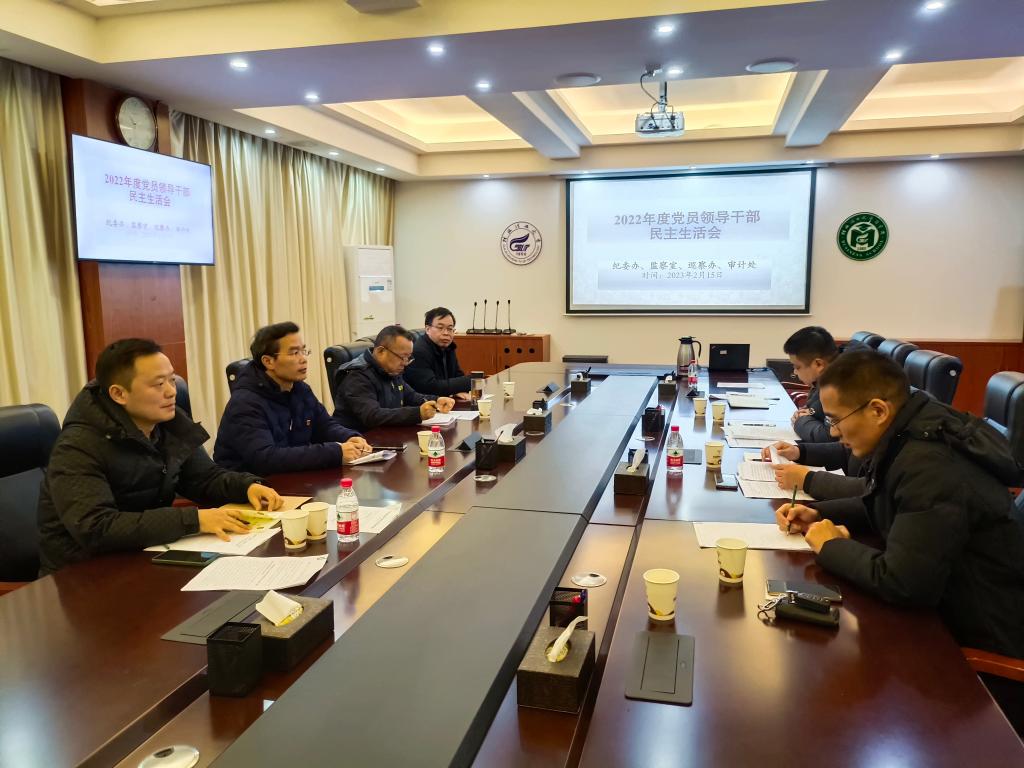 根据学校召开2022年度民主生活会工作部署,2023年2月15日下午,纪委办、监察室、巡察办、审计处在屏风校区教七楼7206室召开2022年度党员领导干部民主生活会。学校党委常委、纪委书记韦学敏出席指导。会议由周章明同志主持。