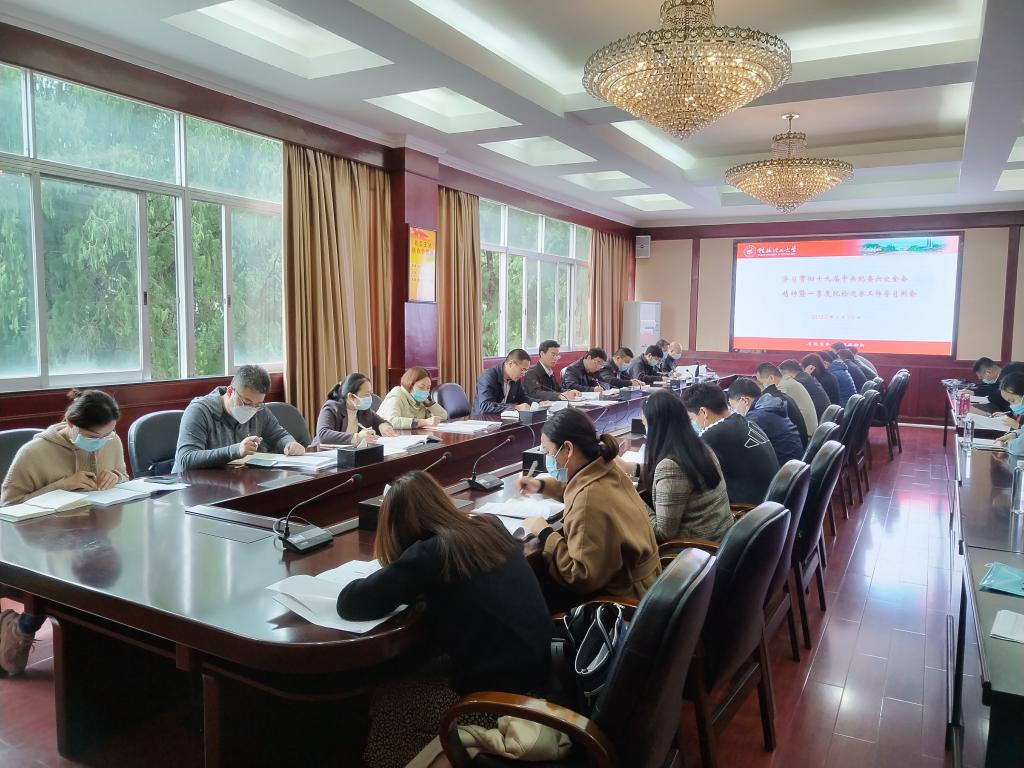 会议强调,今年是党的二十大召开之年,学校纪检巡察干部要切实把思想和行动统一到习近平总书记重要讲话精神上来,统一到十九届中央纪委六次全会部署要求上来,坚持严的主基调不动摇,不折不扣抓好任务落实,不断把全面从严治党向纵深推进。一是要旗帜鲜明,自觉作学习贯彻习近平新时代中国特色社会主义思想的表率。要清醒认识自身岗位职责的特殊重要性,以高度的责任感和使命感,自觉作学习贯彻习近平新时代中国特色社会主义思想的政治标杆、思想标杆和行动标杆。二是要明确今年重点工作,助推学校事业高质量发展。要深入学习贯彻习近平总书记关于正确把握社会主要矛盾和中心任务、重视战略策略问题的重要论述,谋划好协助党委深化全面从严治党、“清廉桂工”建设、推动政治监督具体化常态化、做深做细日常监督、严肃执纪问责等今年的纪检巡察重点工作。三是要担当作为,确保各项工作任务落地落实见成效。要提高政治站位,把政治建设放在首位;要不断提升统筹推进能力、改革创新能力和风险防控能力;要提振斗争精神,把发扬斗争精神作为新时代每一位纪检巡察干部的基本精神底色,坚决同腐败行为斗争到底,以踏石留印、抓铁有痕的精神真抓实干、攻坚克难,以优异成绩迎接党的二十大胜利召开。