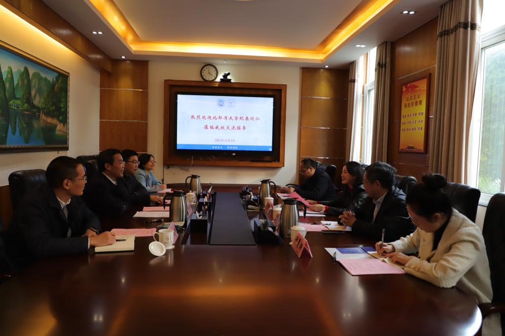 12月9日下午,北部湾大学党委常委、纪委书记覃宇环一行来访我校。学校党委常委、纪委书记韦学敏在屏风校区第二会议室热情接待了来访客人。学校纪委办监察室巡察办工作人员参加座谈会。