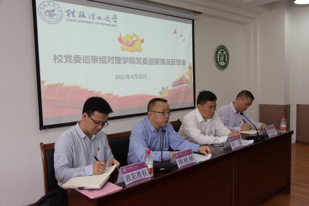 反馈大会上,巡察组组长张雷同志代表巡察组反馈了巡察意见:2018年来,理学院党委坚持以习近平新时代中国特色社会主义思想为指导,坚持社会主义办学方向,落实立德树人根本任务,围绕学校中心工作加强内涵建设,统筹做好疫情防控和学院发展各项工作。巡察中发现的主要问题是:党的政治建设有弱项、党的思想建设有短板、党的组织建设有差距、党的纪律作风建设有不足、专题问题整改等抓得不实。巡察组从提高政治站位,全面加强党的领导,注重政治建设,落实“两个责任”,不断推进从严治党向纵深发展等方面提出了意见和建议。