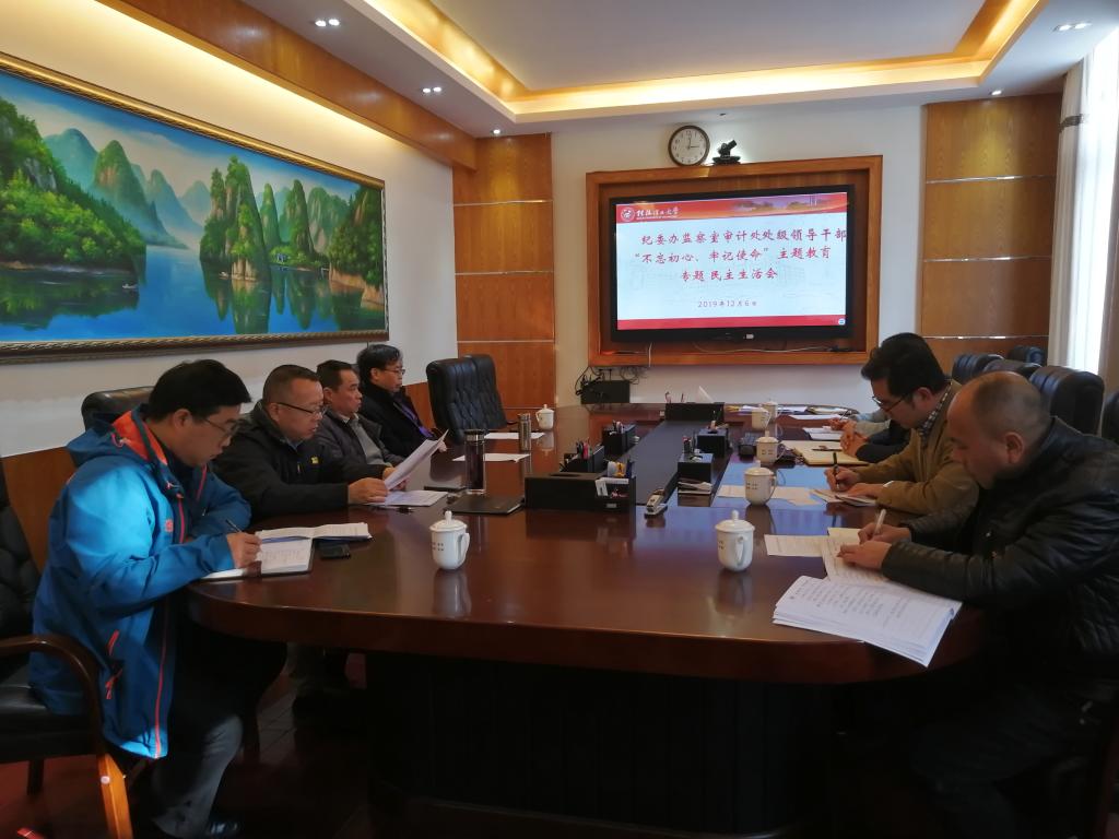 根据《关于召开“不忘初心、牢记使命”主题教育专题民主生活会的通知》文件精神,12月6日下午,纪委办、监察室、审计处在屏风校区办公楼第二会议室召开纪监审处级领导干部“不忘初心、牢记使命”主题教育专题民主生活会。学校党委副书记、纪委书记孙宁出席指导。会议由学校纪委副书记、纪委办主任华桂林同志主持。