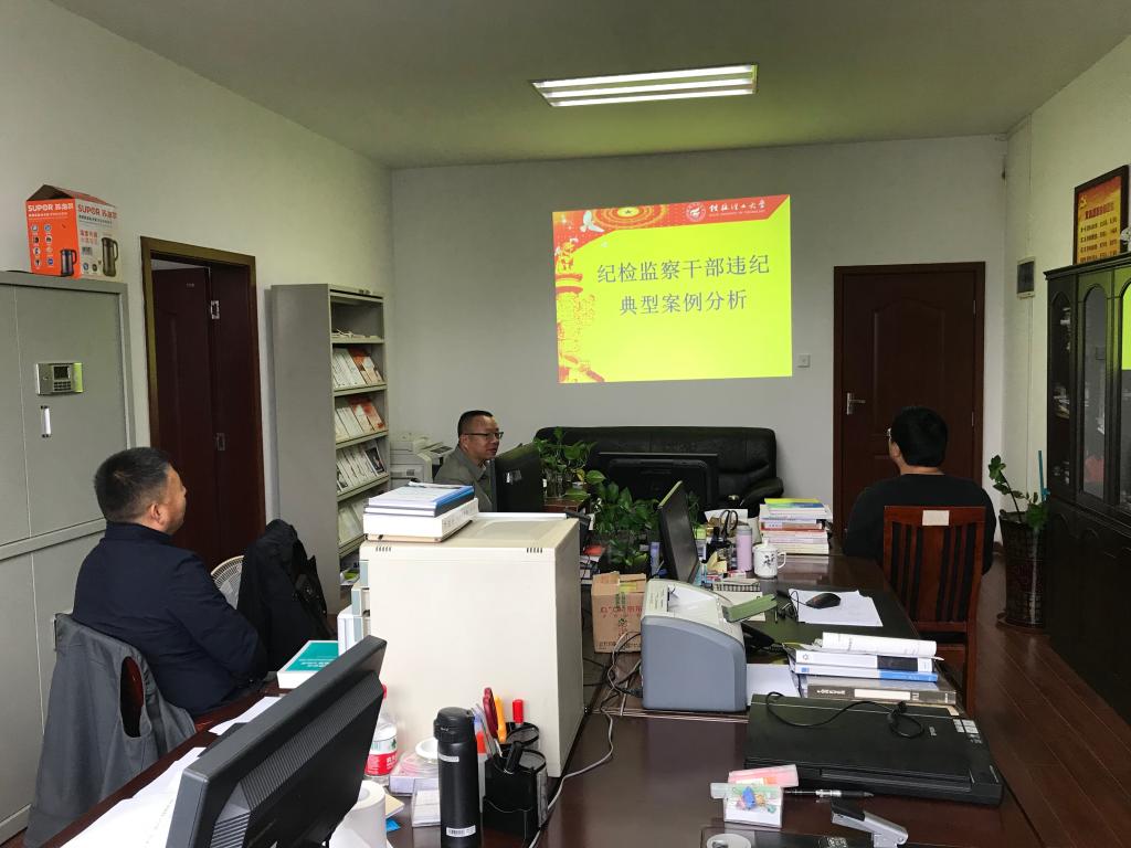10月23日下午,学校纪委举办纪检监察干部典型案例分析专题学习会,学校全体专职纪检监察干部参加了学习。学校纪委副书记、监察室主任华桂林结合近期对新修订的《中国共产党纪律处分条例》的学习,分析了近几年发生的几起纪检监察干部违纪案例,教育大家引以为鉴,严规矩、守底线,做忠诚、干净、担当的纪检监察干部。