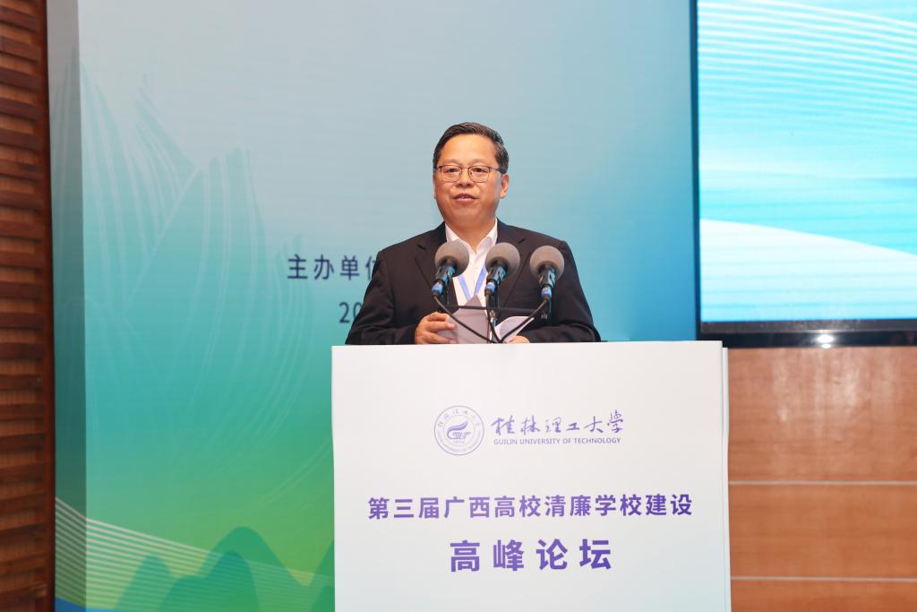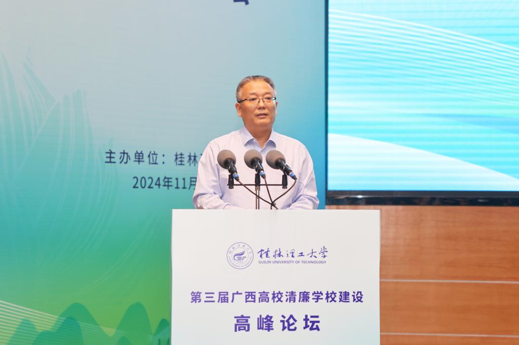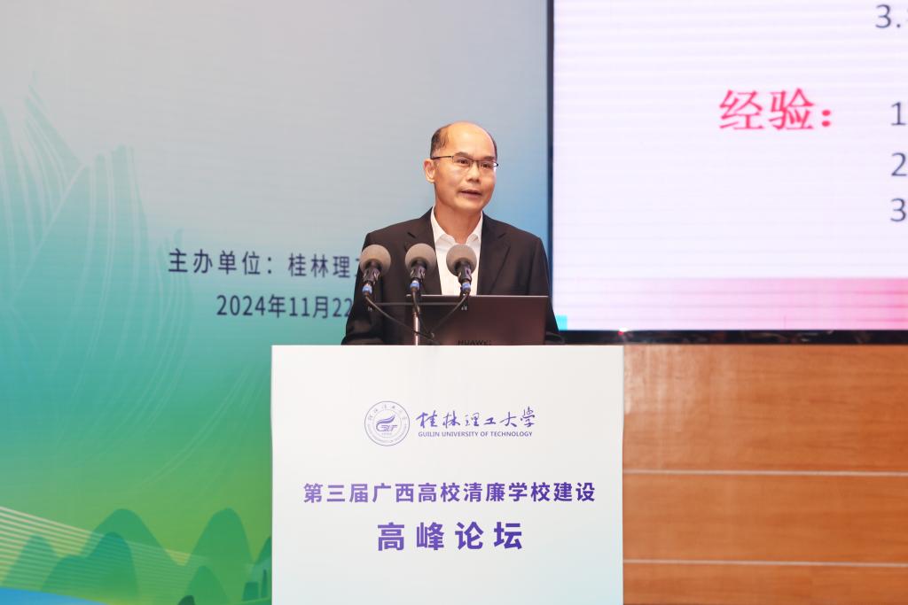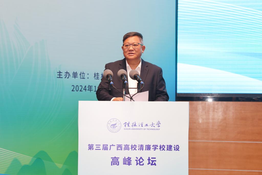 据悉,广西高校清廉学校建设高峰论坛是我校推进“清廉桂工”建设的一种探索与实践,在各兄弟高校的大力支持下,已经成功举办两届。该论坛在区内产生了广泛的社会影响和良好的社会效应,已经成为区内高校交流清廉学校建设理论和实践成果的重要平台。本次论坛的成功举办,对于全面深化清廉学校建设,培育风清气正良好教育生态,赋能教育事业高质量发展具有重要意义。下一步,学校将以高度的政治自觉,持续加强“清廉桂工”建设,深入扎实推进党风廉政建设和反腐败斗争,大力营造风清气正的政治生态和育人环境,推动清廉学校建设提质增效,奋力开创学校各项事业高质量发展新局面。