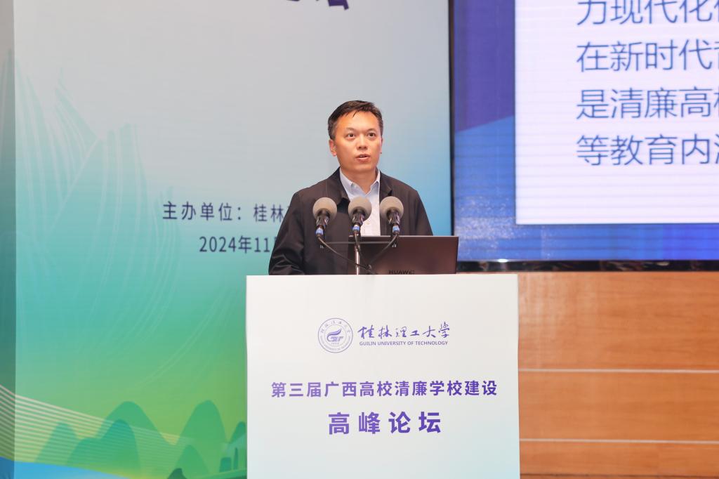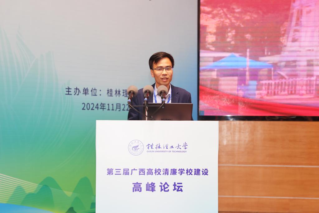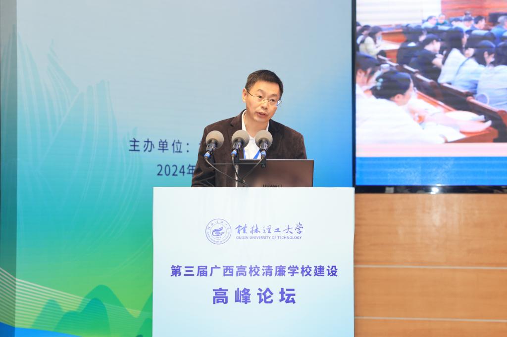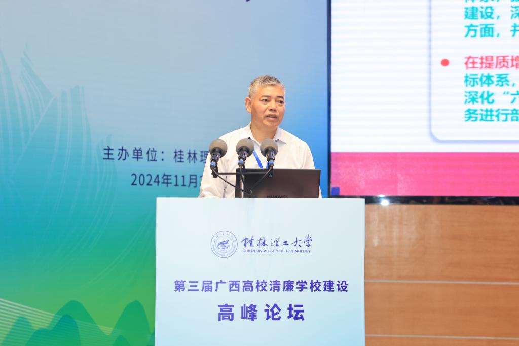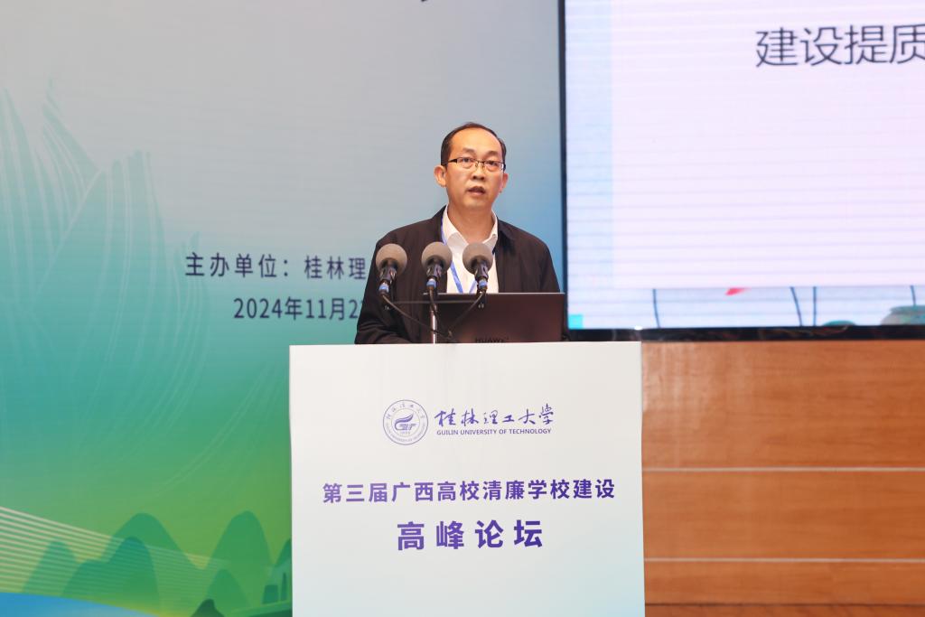 桂林电子科技大学党委常委、副校长陈松青作题为《以治理体系和治理能力现代化助力清廉高校建设》的报告