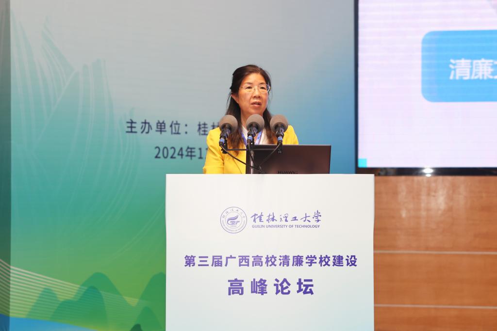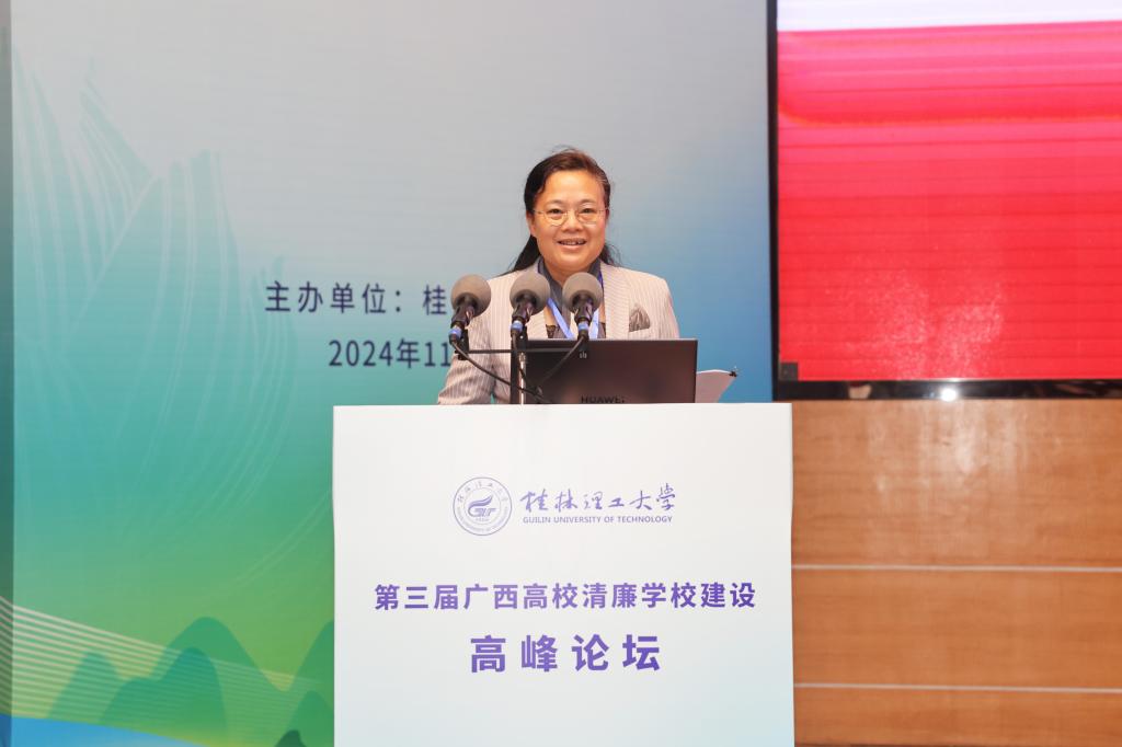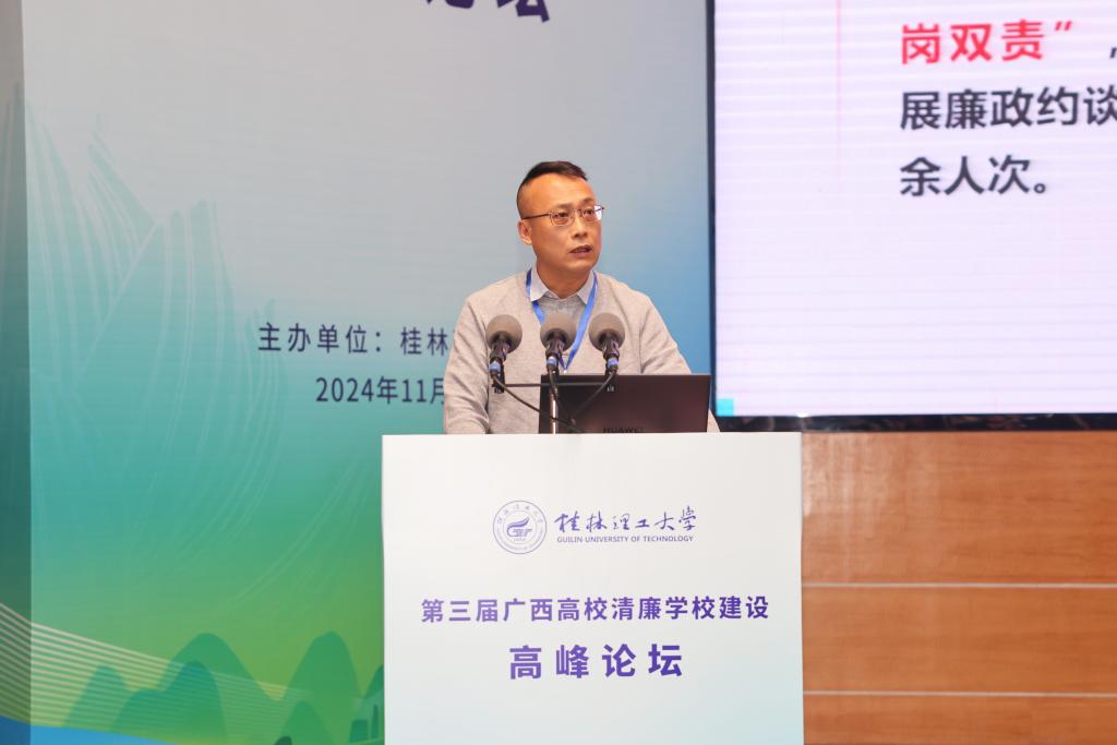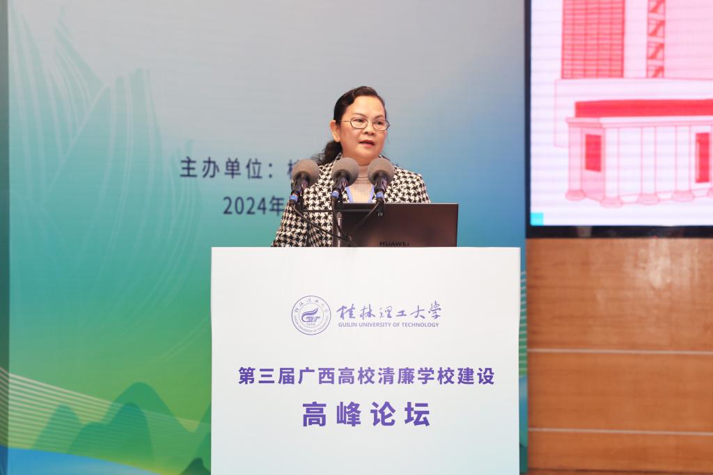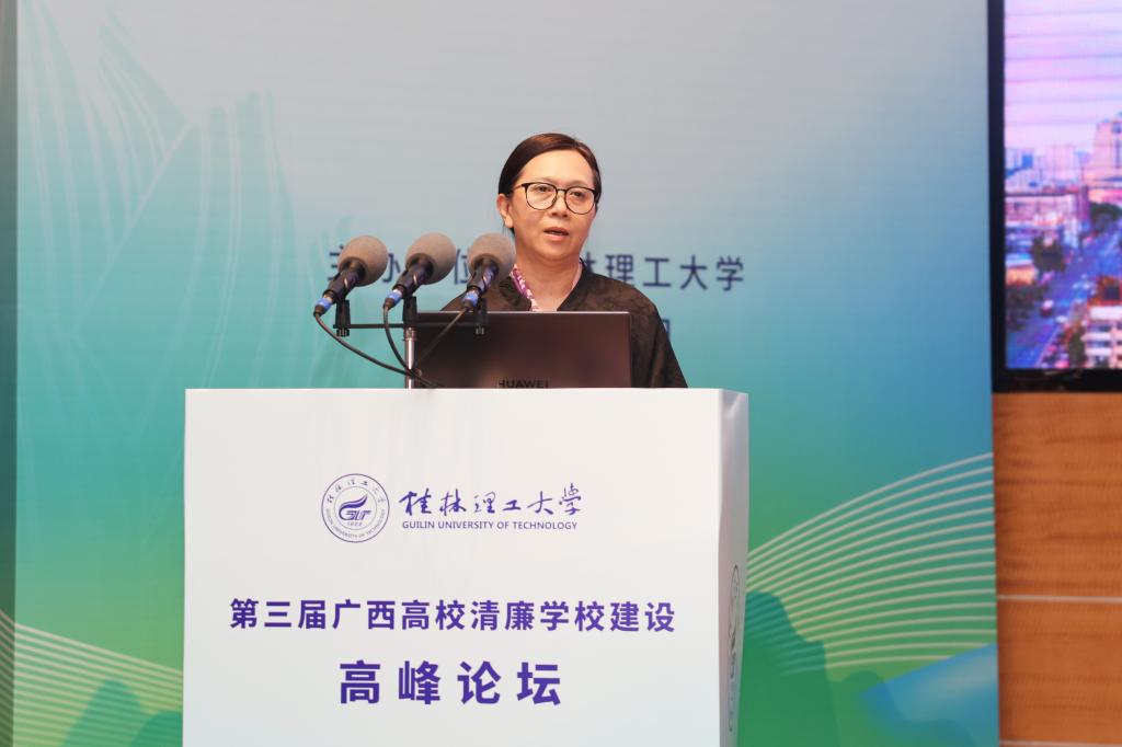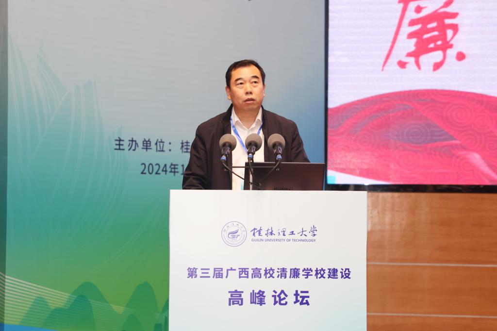 桂林电子科技大学党委常委、副校长陈松青作题为《以治理体系和治理能力现代化助力清廉高校建设》的报告