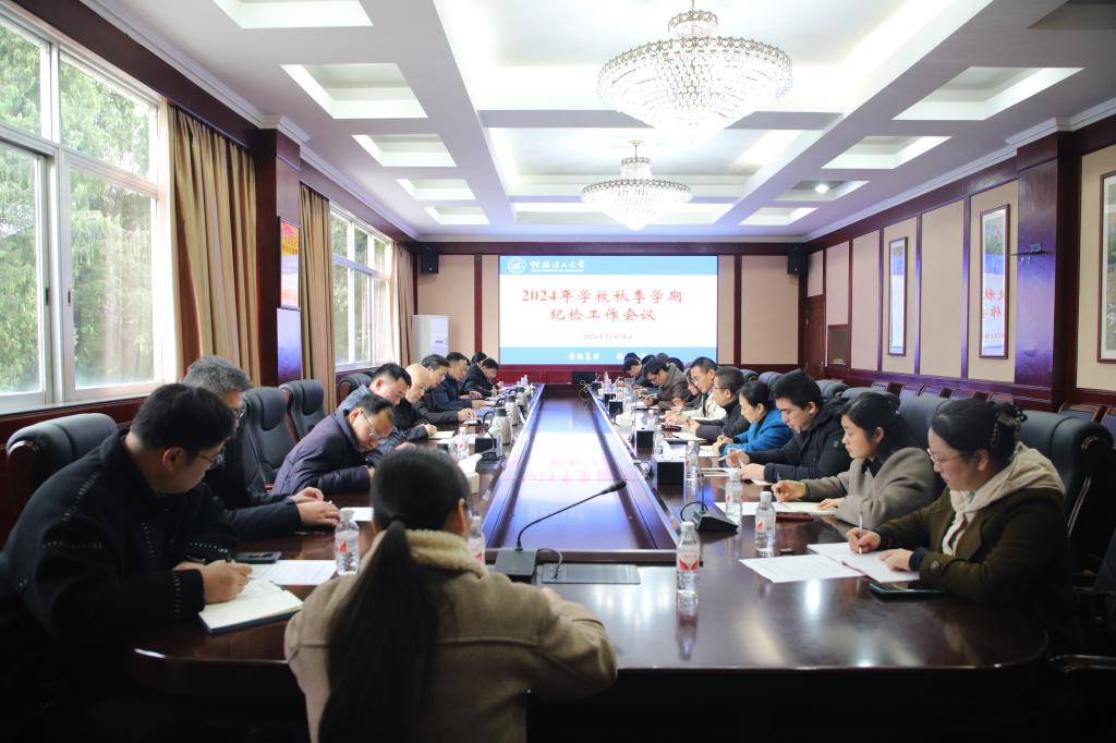 12月18日上午,学校纪委在屏风校区教八楼三楼会议室召开2024年学校秋季学期纪检工作会议。自治区纪委监委驻学校纪检监察组组长,学校党委常委、纪委书记韦学敏主持会议并讲话。驻校纪检监察组全体干部、学校二级纪委书记参加会议。