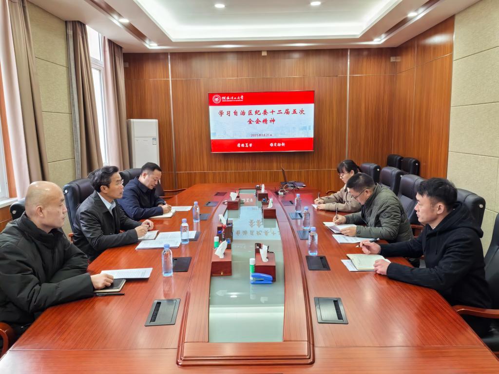 自治区纪委监委驻学校纪检监察组组长、学校党委常委、纪委书记韦学敏组织传达学习了自治区纪委十二届五次全会精神。
