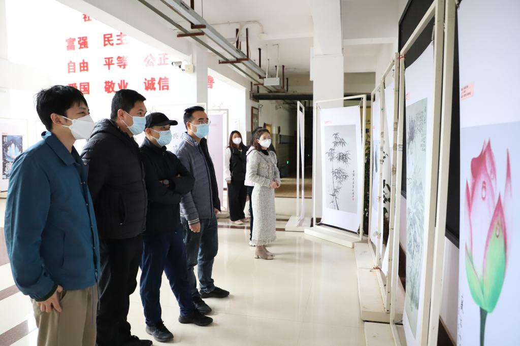 作品展现场,广大党员干部群众驻足观摩、耐心品味,共同鉴赏、仔细体会书画作品的廉政含义,细细体会各个作品的深远意境,品味不同题材的丰富内涵。